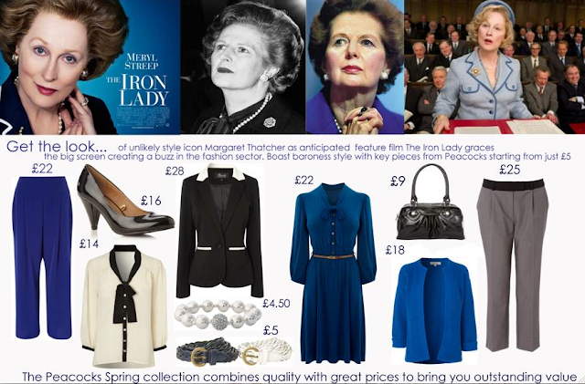If I were a more easily influenced consumer then I might be wearing a twee M & S suit and pussy bow blouse to bring you this blog post. Fortunately, I have thus far managed not to succumb to all the press releases and media stories (newspaper fashion journalists, you know who you are) which insist that, to coincide with the release of Phylidda Lloyd's Meryl Streep as Margaret Thatcher biopic, The Iron Lady, we should all be forming an orderly queue to buy a blue skirt suit and asking our hairdresser for helmet hair.