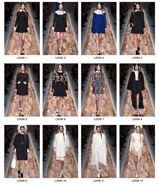 The Girl With a Pearl Earring. They told Style.com, "We wanted to capture women in a private moment... In this show, the face is very important". Indeed, it is striking to look at the line-up of looks as you see it on Style.com and see that each model's hair is plaited and draped across her left shoulder. It's like lots of little walking portraits. And they're all dressed in dreamily pretty, demure dresses, cut either as sweet, short tunics or 17th century long.